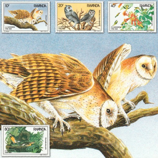 Znaczki upamiętniające dwusetną rocznicę urodzin amerykańskiego ornitologa Johna J. Audbubona (1785-1851).