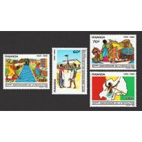 Znaczki upamiętniające 30. rocznicę rewolucji w 1959 roku. Na znaczkach przedstawiono modernizację i poprawę warunków bytowych: dostęp do wody, narzędzia rolnicze, zabudowę miejską i transport zmotoryzowany. Na ostatnim znaczku widnieje wojownik w tradycyjnym stroju oraz mapa i flaga Rwandy.
