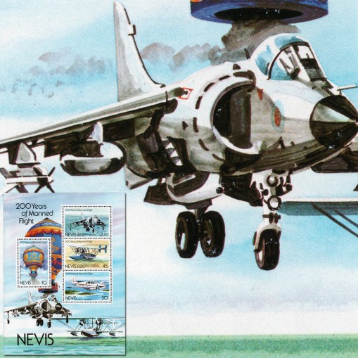 Znaczki w bloku upamiętniające 200. rocznicę pierwszego lotu człowieka balonem dokonanego przez braci Montgolfier w 1783 roku.