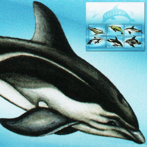 Seria w arkuszu, na znaczkach których widnieją następujące gatunki delfinów: