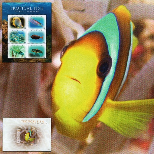 Seria w arkuszu i blok, na znaczkach których widnieją następujące gatunki ryb zamieszkujące wody Karaibów: