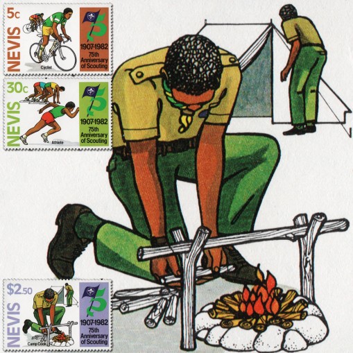 Seria upamiętniająca 75-lecie ruchu skautowego na Nevis.