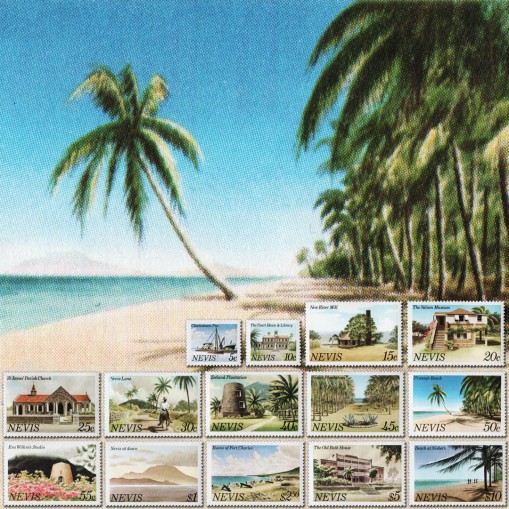 Na znaczkach przedstawiono widoki z Nevis, kolejno: