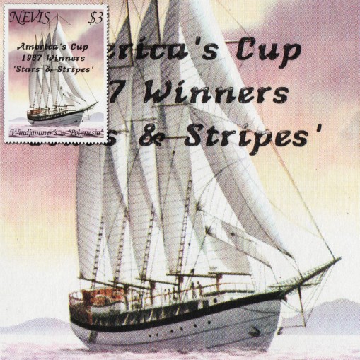 Znaczek wydany pierwotnie w 1980 roku, tym razem z nadrukiem upamiętniającym zwycięstwo amerykańskiego jachtu „Stars and Stripes” w regatach America’s Cup 1987.
