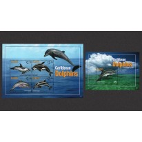 Seria w arkuszu i blok, na znaczkach których widnieją następujące gatunki delfinów: