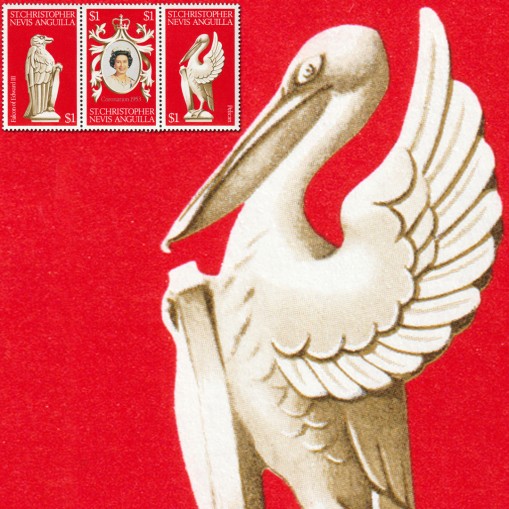 Na znaczkach widnieją kolejno: jastrząb z herbu króla Edwarda II (rzeźba ta jest jedną z dziesięciu figur heraldycznych reprezentujących genealogię Elżbiety II wykonanych na okazję koronacji monarchini), portret Elżbiety II oraz pelikan brunatny - gatunek występujący na wybrzeżach znacznej części obu Ameryk.