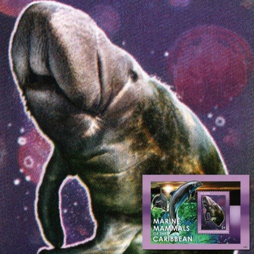 Znaczek w bloku, na którym widnieje manat karaibski.