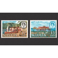 Znaczki wydane uprzednio w 1964 roku (oprócz znaczka lotniczego), tym razem z nadrukami upamiętniającymi uzyskanie przez Saint Lucia statusu państwa stowarzyszonego z Wielką Brytanią (niepodległość kraj ten uzyskał w 1979 roku).
