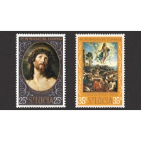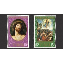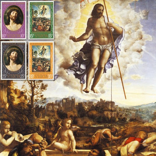 Na znaczkach widnieją dzieła malarstwa włoskiego: „Ecce Homo” (Guido Reni) oraz „Zmartwychwstanie” (Giovanni Antonio Bazzi).