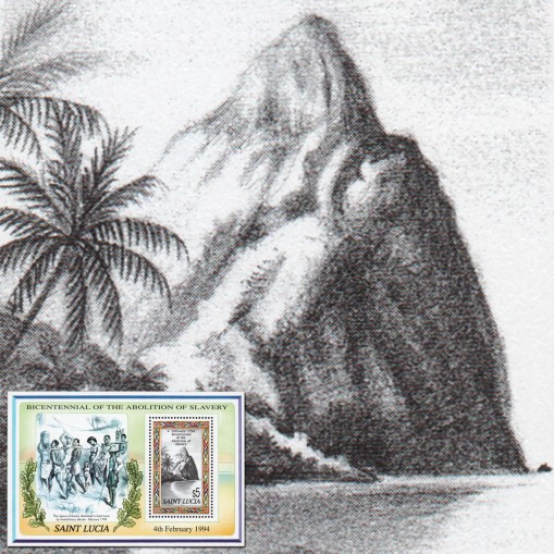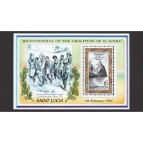 Znaczek w bloku upamiętniający 200. rocznicę zniesienia niewolnictwa na Saint Lucii.