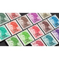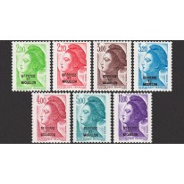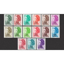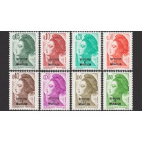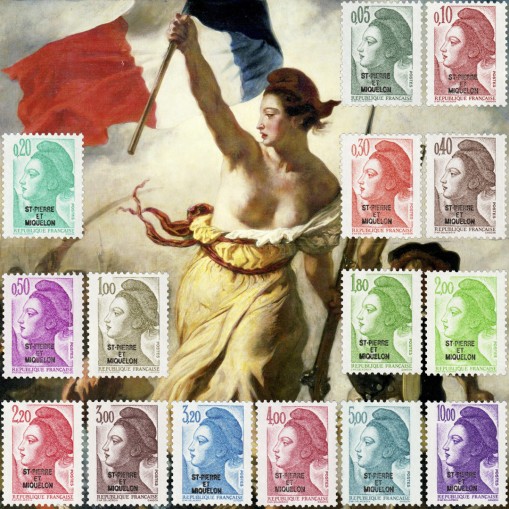 Obiegowe znaczki francuskie, wprowadzone do emisji w 1982 roku, tym razem z nadrukami ST-PIERRE ET MIQUELON.