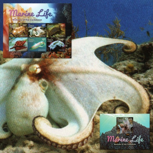 Seria w arkuszu i blok, na znaczkach których widnieją następujące gatunki mięczaków: