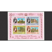 Znaczki w bloku upamiętniające 25. rocznicę wstąpienia na tron królowej Elżbiety II.