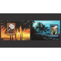 Dwa bloki, na znaczkach których widnieją następujące gatunki grzybów: Amanita agglutinata i Trogia buccinalis.