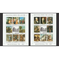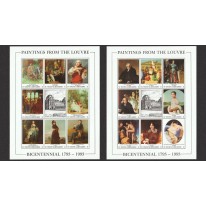 Znaczki w blokach upamiętniające 200. rocznicę powstania muzeum w paryskim Luwrze.
