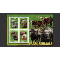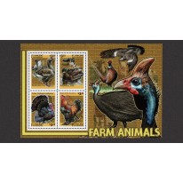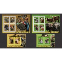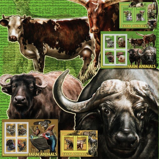 Seria w dwóch arkuszach i dwa bloki, na znaczkach których widnieją następujące gatunki zwierząt hodowlanych: gęś, kaczka, indyk, kura, krowa, zebu, bizon, świnia, koń, kuc, koza i owca.