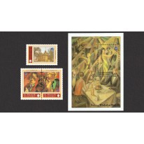 Na znaczkach widnieją dzieła malarstwa polskiego, kolejno: