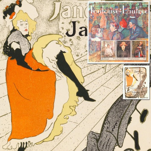 Znaczki i blok upamiętniające setną rocznicę śmierci francuskiego malarza Henri’ego Toulouse-Lautreca.