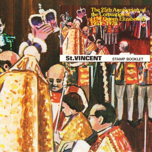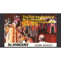 Znaczki w zeszyciku filatelistycznym upamiętniające 25. rocznicę wstąpienia na tron królowej Elżbiety II.
