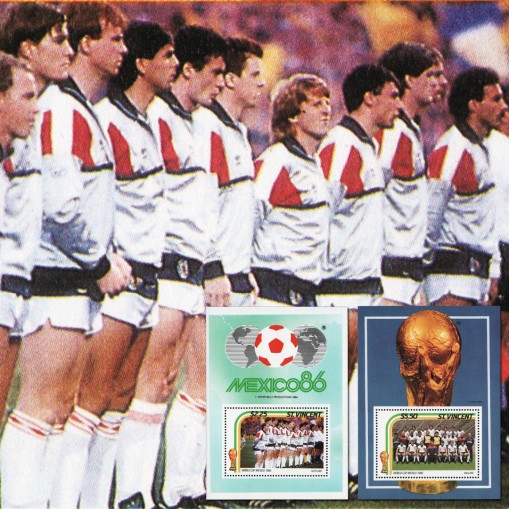 Dwa bloki upamiętniające mistrzostwa świata w piłce nożnej rozegrane w Meksyku.