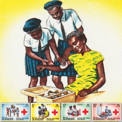 Znaczki upamiętniające stulecie brytyjskiego Czerwonego Krzyża.