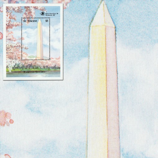 Blok wydany z okazji międzynarodowej wystawy filatelistycznej „World Stamp Expo’89” w Waszyngtonie.
