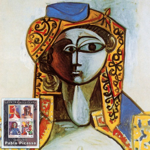 Blok upamiętniający 30. rocznicę śmierci Pabla Picasso. Na znaczkach widnieją reprodukcje jego obrazów, kolejno: