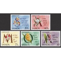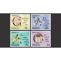 Na znaczkach widnieją słowa popularnych angielskojęzycznych kolęd i kwiaty orchidei.
