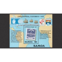 Znaczek w bloku upamiętniający 500. rocznicę odkrycia przez Krzysztofa Kolumba Ameryki.
