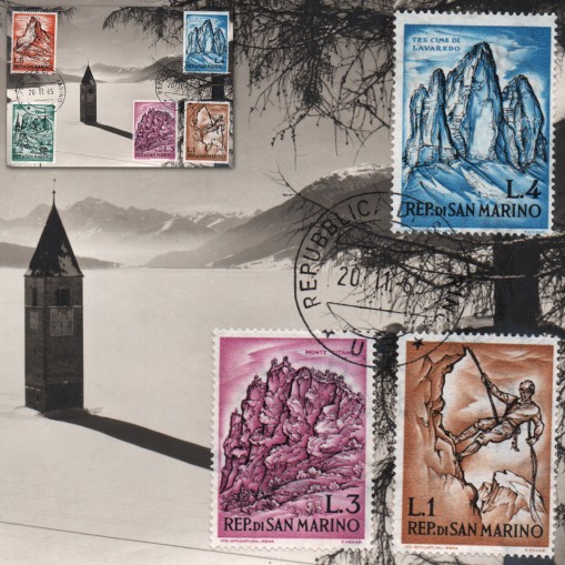Na wydanych w 1962 roku znaczkach widnieją alpejskie szczyty (Langkofel, Monte Titano, Drei Zinnen i Matterhorn) oraz alpinista opuszczający się na linie.