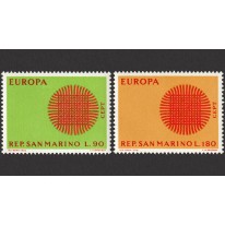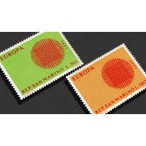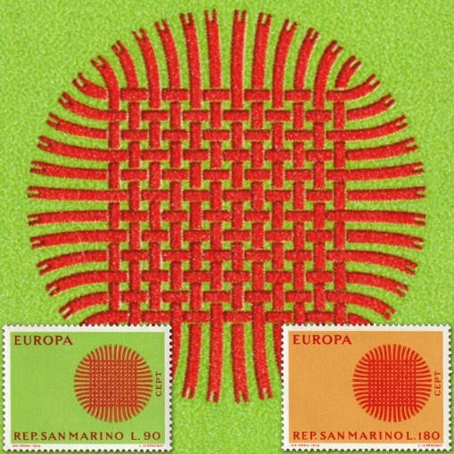Emisja EUROPA CEPT. Znaczki tej emisji mają rozpoznawalny wśród filatelistów dizajn słońca, będący projektem irlandzkiego artysty (Louis le Brocquy). Słońce zbudowane jest ze splecionych ze sobą linii symbolizujących pocztę i telekomunikację, a ich liczba (24) odpowiadała liczbie krajów zrzeszonych wówczas w CEPT.