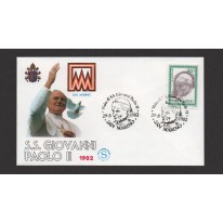 Pojedyncza koperta pierwszego dnia obiegu celebrująca podróż papieża Jana Pawła II do San Marino 29. sierpnia 1982 roku.