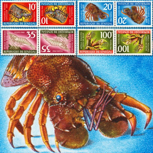 Na znaczkach widnieją następujące gatunki skorupiaków występujących w wodach u wybrzeży Senegalu: