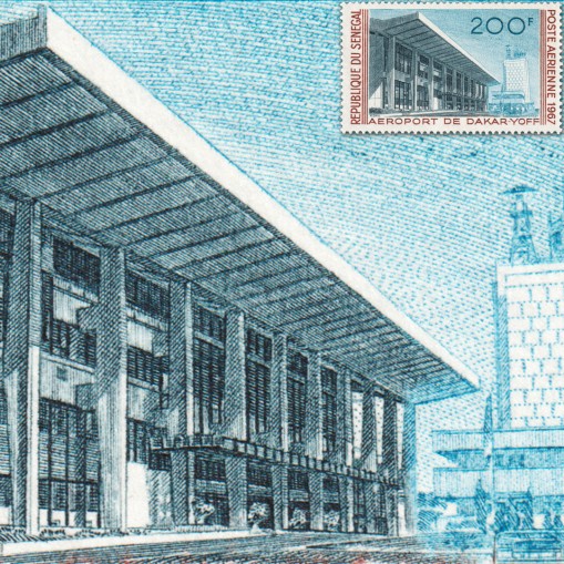 Na znaczku widnieje budynek terminalu lotniska w Dakarze.