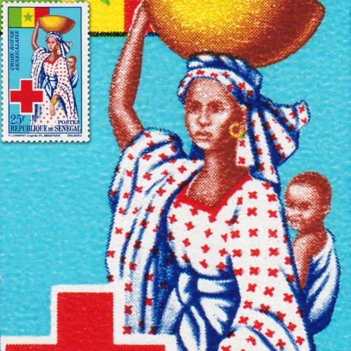 Znaczek promujący działania Czerwonego Krzyża w Senegalu.