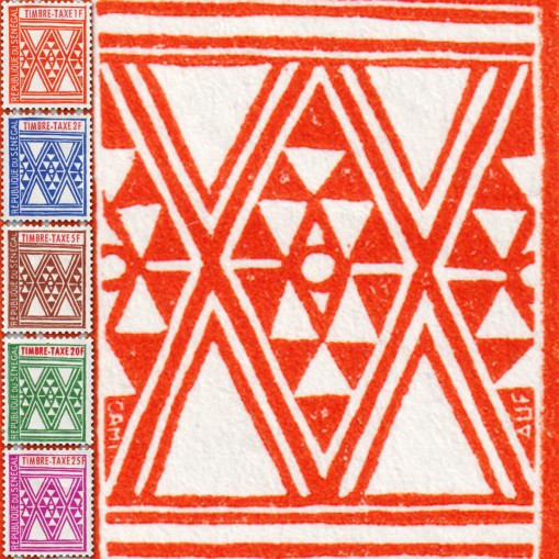 Znaczki dopłaty ozdobione geometrycznym motywem afrykańskim.