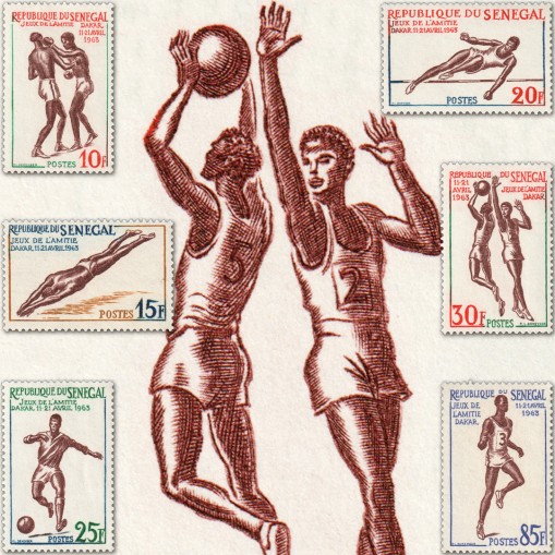 Znaczki upamiętniające Zawody Sportowe Przyjaźni w Dakarze.