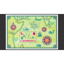 Na znaczku i bloku widnieje stara mapa archipelagu Seszeli.