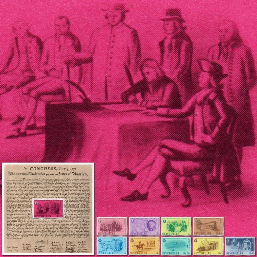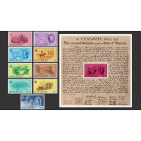 Znaczki i blok upamiętniające 200. rocznicę rewolucji amerykańskiej.