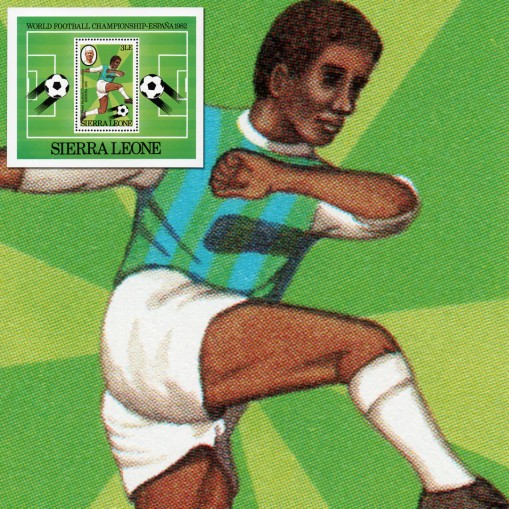 Znaczek w bloku upamiętniający mistrzostwa świata w piłce nożnej rozegrane w Hiszpanii.