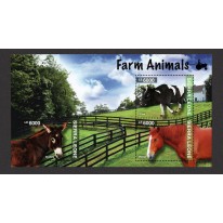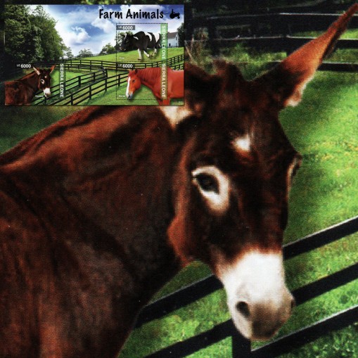 Seria w arkuszu, na znaczkach której widnieją zwierzęta hodowlane: osioł, koń i krowa.