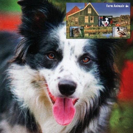 Seria w arkuszu, na znaczkach której widnieją zwierzęta domowe: pies, kot i kaczka.