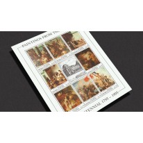 Na znaczkach widnieją dzieła sztuki autorstwa francuskiego malarza Eugène'a Delacroix z jego kolekcji, kolejno: „Zdobycie Konstantynopola przez Krzyżowców”, „Żydowskie wesele w Maroko”, „Śmierć Sardanapala” i „Wolność wiodąca lud na barykady”.