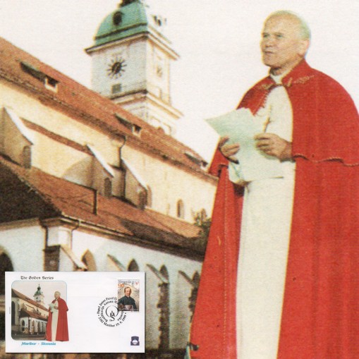 Pojedyncza koperta okolicznościowa celebrująca wizytę papieża Jana Pawła II w Mariborze podczas jego szóstej podróży do Słowenii 19. września 1999 roku.