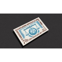 Znaczek upamiętniający 15. rocznicę Powszechnej Deklaracji Praw Człowieka, czyli zbioru praw człowieka i zasad ich stosowania uchwalonego przez Zgromadzenie Ogólne ONZ 10 grudnia 1948 roku w Paryżu. Na znaczku widnieje kula ziemska, waga i logo UNESCO.