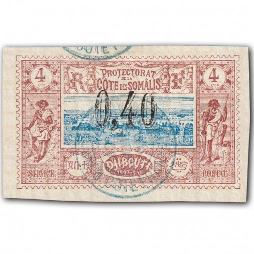 Jest to znaczek wydany wcześniej w 1894 roku, na którym przedstawiono widok na Dżibuti, tym razem z przedrukiem nominału.