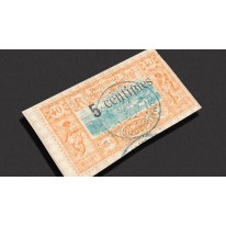 Jest to znaczek wydany wcześniej w 1900 roku, na którym przedstawiono widok na Dżibuti, tym razem z przedrukiem nominału.