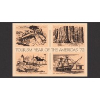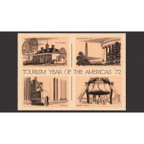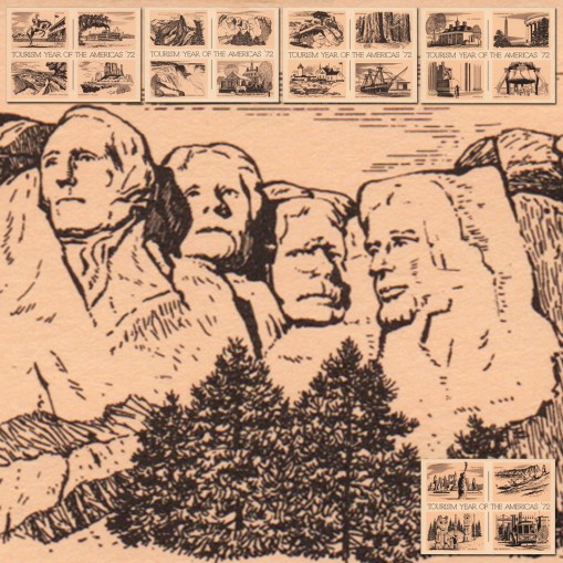 Na kartkach i znaczkach widnieją atrakcje turystyczne Stanów Zjednoczonych.