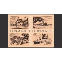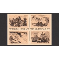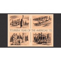 Zestaw pięciu kartek pocztowych z nadrukowanymi znaczkami upamiętniających Rok Turystyki Obu Ameryk.
