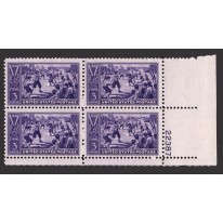 Znaczek w czwórce z marginesem arkusza zawierającym numer kontrolny matrycy [ang. plate block].